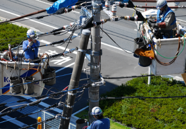 電気を家庭まで送るためには、必ず電線同士を接続したり分岐させたりする必要があります。その架空配電線の各電線接続部には接続材料や接続工具が必要になります。今後も電力を安定供給するためには、施工効率化やスキルレス化が求められています。こうした課題を解決するために、当社は、接続材料と接続工具の両方を一貫で製造販売可能な国内トップシェアメーカーとして、高品質な電線接続を可能にする接続×圧縮一貫製造技術を持って、電力インフラの信頼性を支えています。