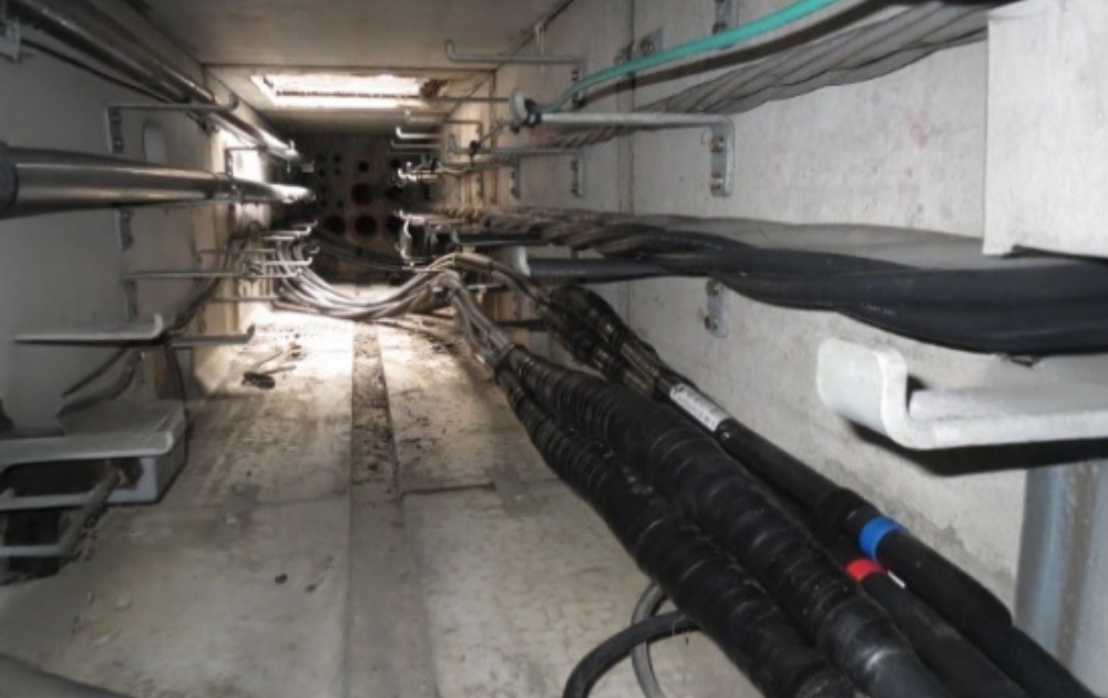 都市部や観光地では、景観の改善、防災、安全性向上を目的に「無電柱化」が進められています。無電柱化とは、道路上の電柱や電線を撤去し、電線共同溝(無電柱化のための地下設備)などに電力線・通信線を収容することで、景観の保全、防災性・安全性の向上を図る取り組みです。これに伴い、地中埋設の電力ケーブルの安全性と信頼性がますます重要になっています。電力ケーブルの接続には、電界を内部に閉じ込める高度な絶縁・遮蔽技術が不可欠です。当社の多層ゴム成型技術は、電界制御と複数のゴム材を精密に成形するノウハウを有しており、電力インフラの信頼性向上に貢献しています。
