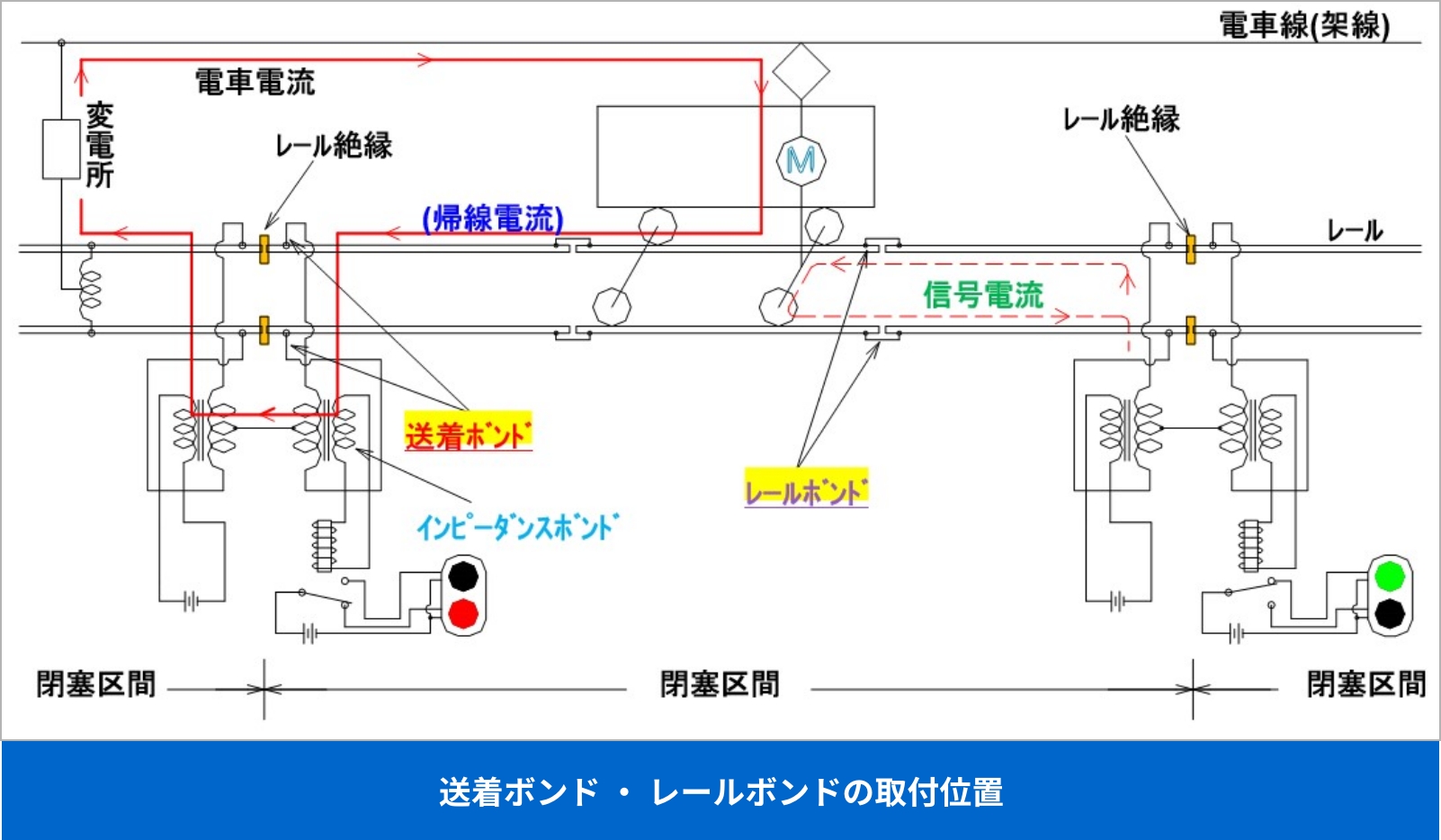 鉄道は、レールに2つの電流(帰線電流・信号電流)が流れ、電車の運行や走行位置の確認を行っています。安定輸送のためには、信号機の安定作動が非常に重要であり、レールと信号機の電気的接続の長期信頼性が不可欠です。また、各レールの継目には隙間があり、電流が流れ難くなるため、隣り合うレール同士の電気的接続も必要です。こうした課題を解決するために、当社の銅テルミット溶接技術は、他工法よりも安定した溶接品質を実現し、20年以上の施工実績から電車の安定輸送に貢献しています。さらに、点検周期を伸ばすことで、少子化による点検作業員不足といった社会課題解決にも貢献しています。