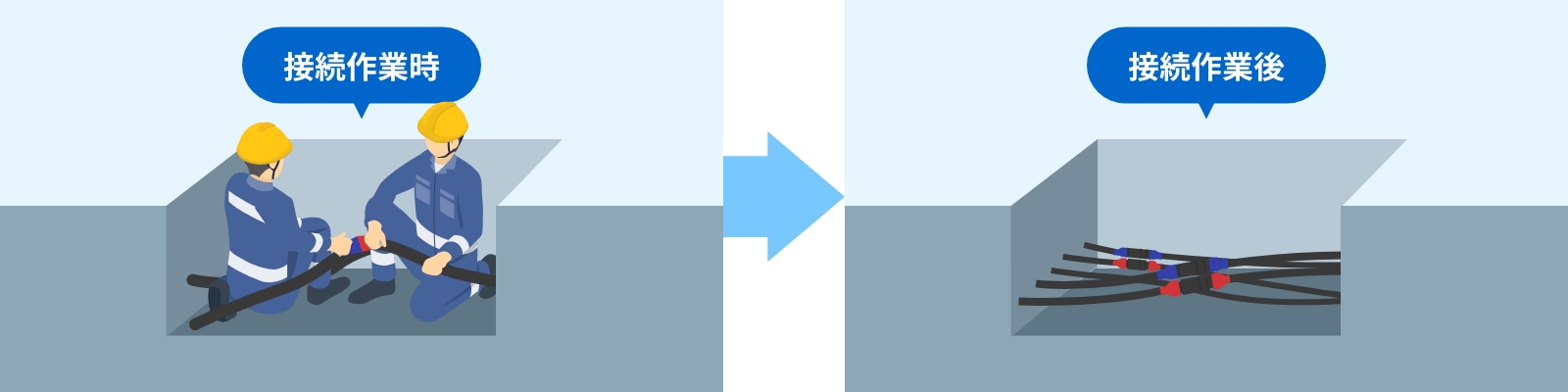 労働人口減少に伴い、迅速・安全・スキルレスな導体接続技術が求められています。こうした課題を解決するために、当社はバネ性のある多点式接点を採用した大電流まで対応可能な着脱式通電技術を開発しました。この技術により、誰でも簡単に着脱できる高信頼な通電を実現しています。多様な電線サイズやお客様のニーズに応じたカスタマイズが可能で、最近では、災害対応やデータセンタ向けなどの狭隘箇所での作業性を向上させたケーブル付きコネクタを開発しました。これらの製品はお客様から高い信頼を得るとともに社会インフラの信頼性向上にも貢献しています。